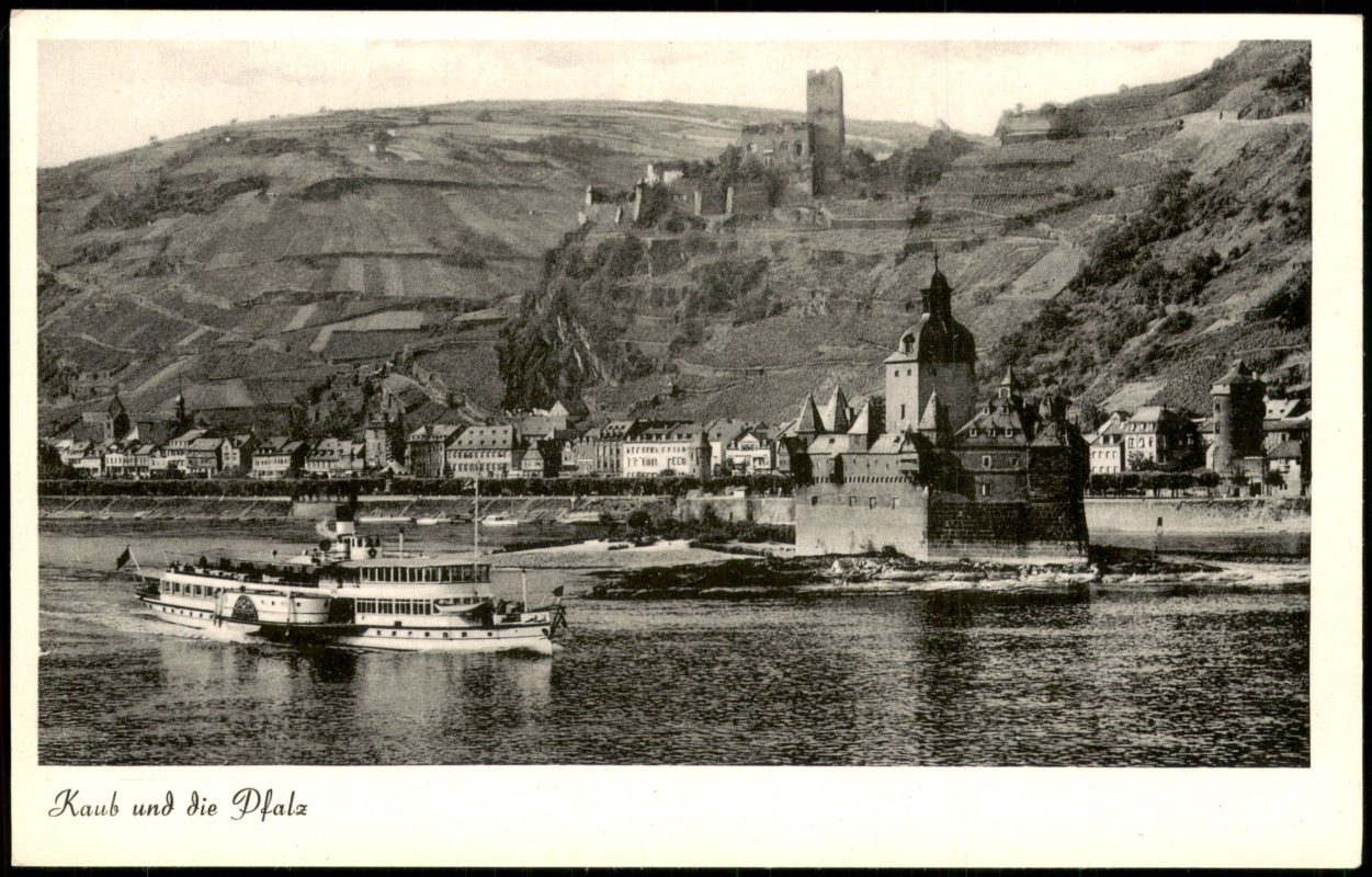Photo Card: Rhein Schiff Dampfer passiert Kaub und die Pfalz - Kaub