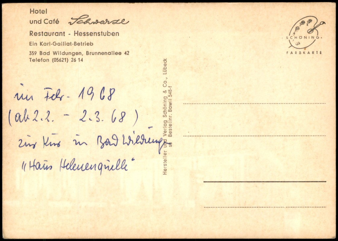 Postcart: Hotel und Café Schwarze Brunnenallee 42 - Bad Wildungen