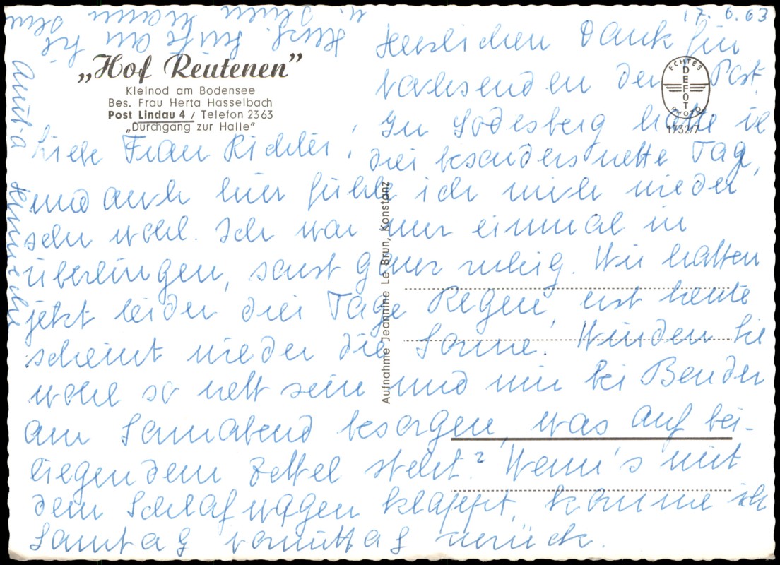 Postcart: Hof Reutenen Kleinod am Bodensee Halle - Lindau (Bodensee)