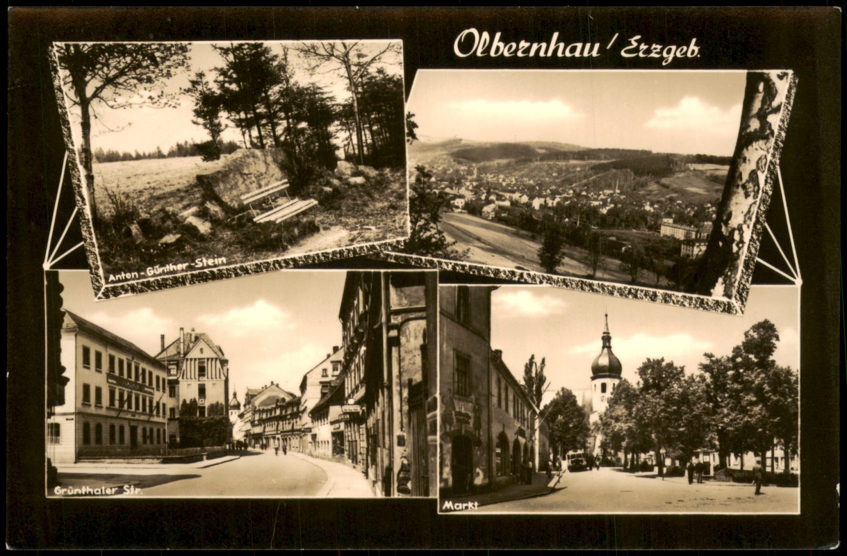 Photo Card: DDR Mehrbild-AK mit Anton-Günther-Stein, Straßen-Ansichten - Olbernhau