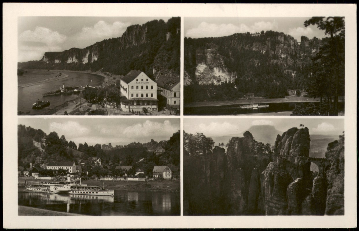 Postcart: 4 Bild Dampfer Felsen Gaststätte - Rathen