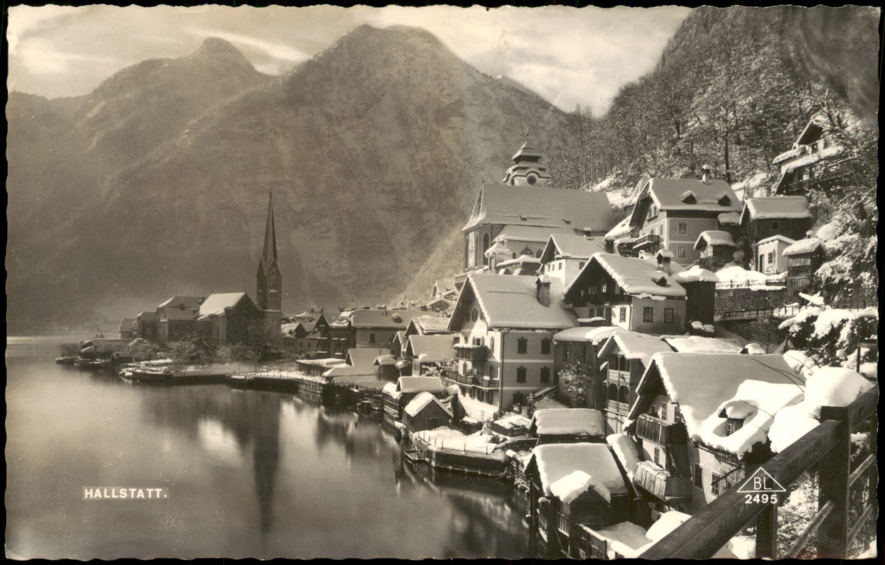 Postcart: Stadtpartie Winterzauber Schnee - Hallstatt