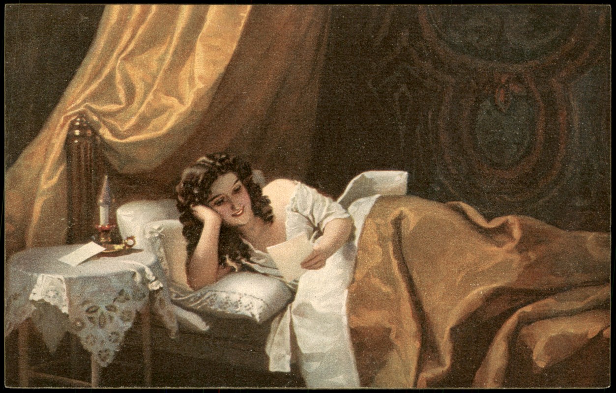 - Bei der Lektüre Meyer von Bremen JOHANN GEORG MEYER Künstlerkarte Gemälde Kunstwerke