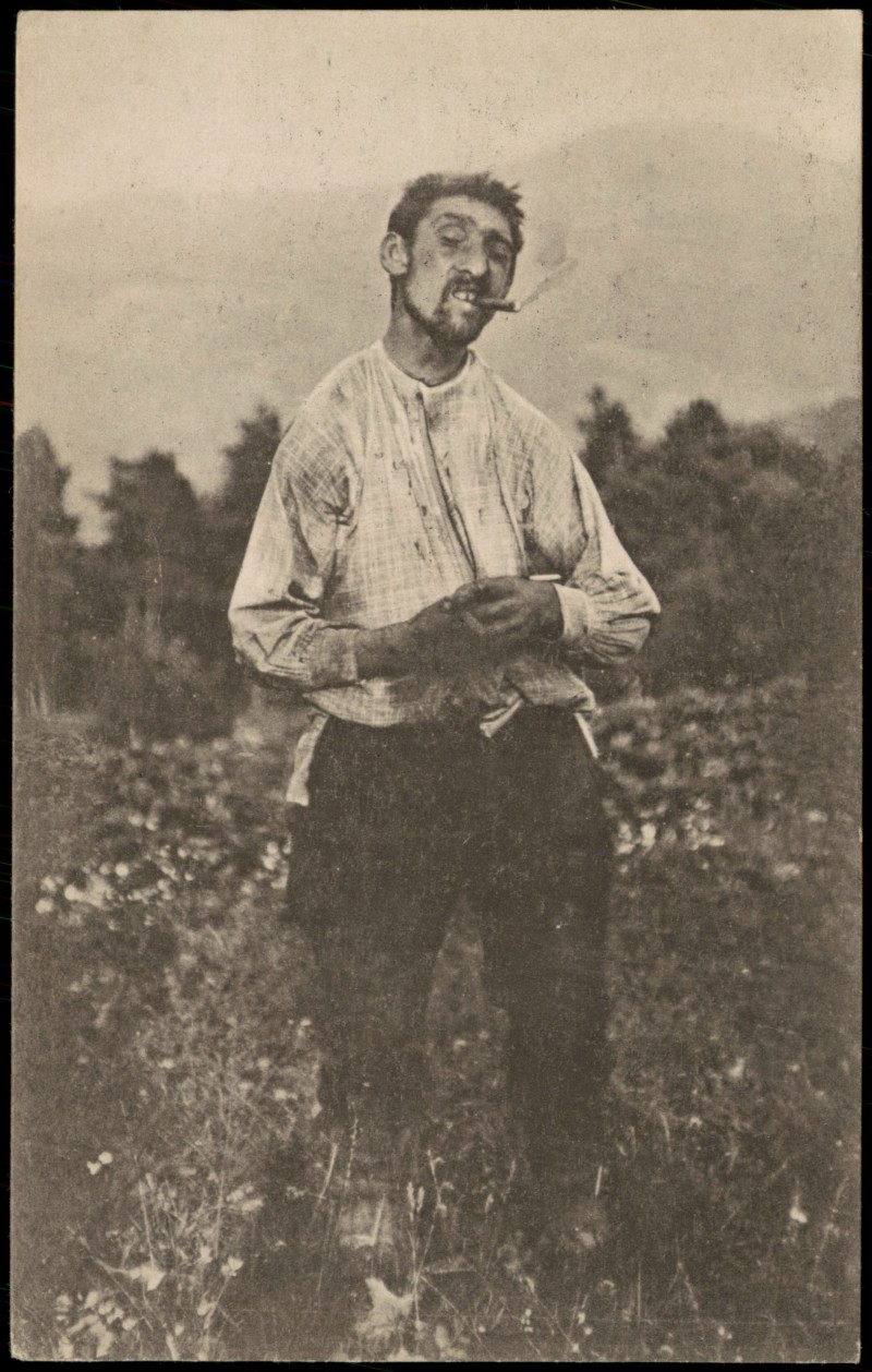 Photo Card: Frühe Fotokunst Armseliger Mann mit Zigarre