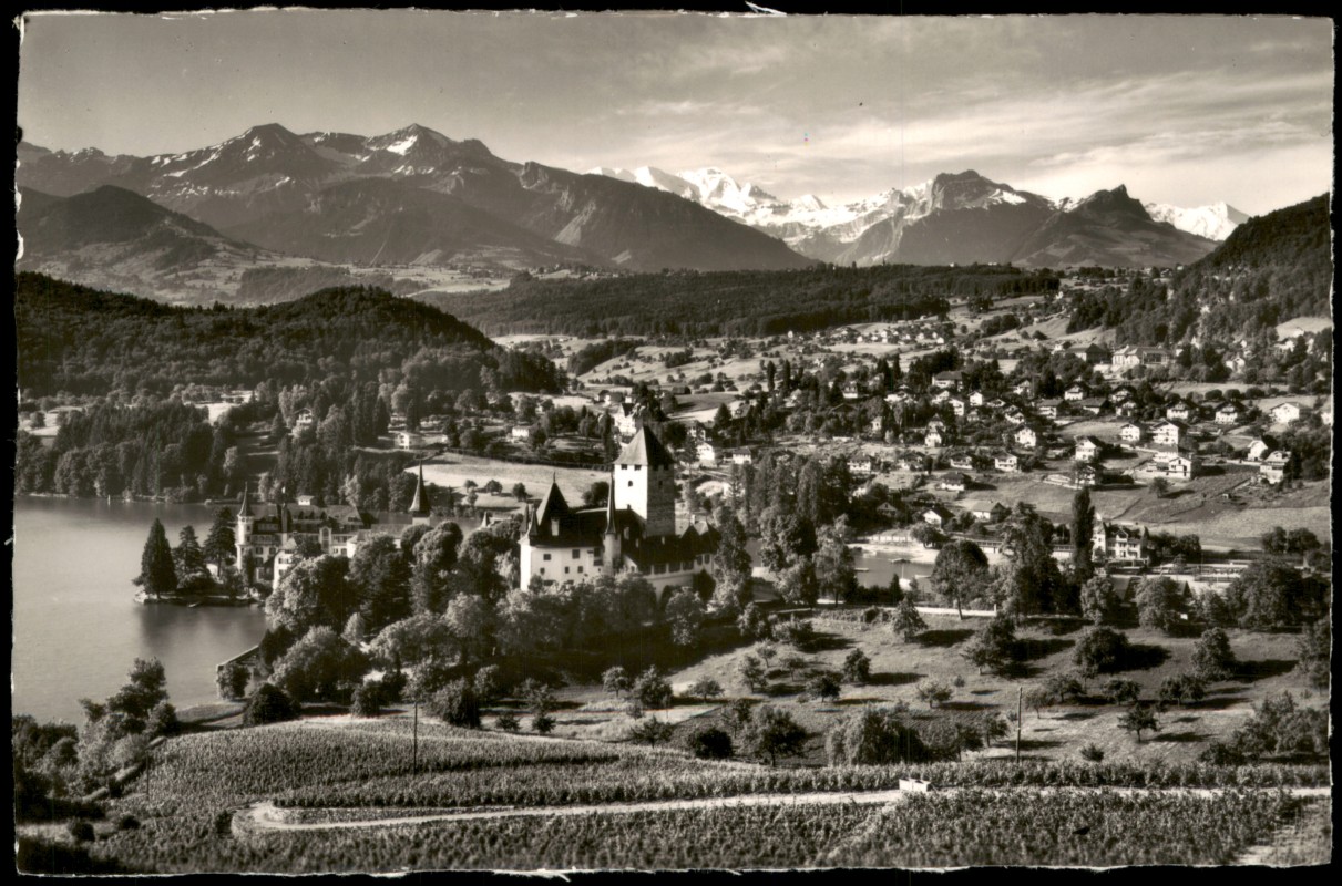 Postcart: Stadtblick mit Alpen - Fotokarte - Spiez