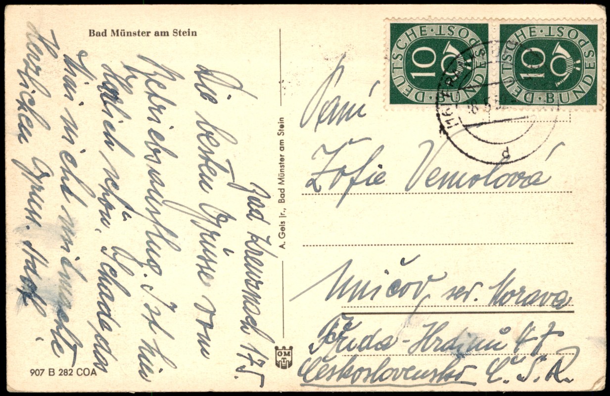 Postcart: Blick auf Stadt und Brücke - Bad Münster am Stein-Ebernburg