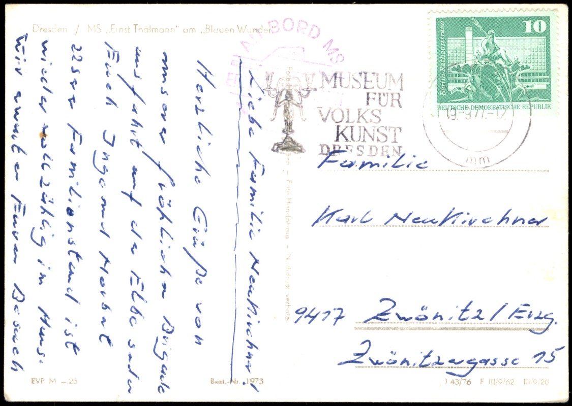 Postcart: Blues Wunder Elbschiff Ernst Thälmann - Loschwitz-Dresden