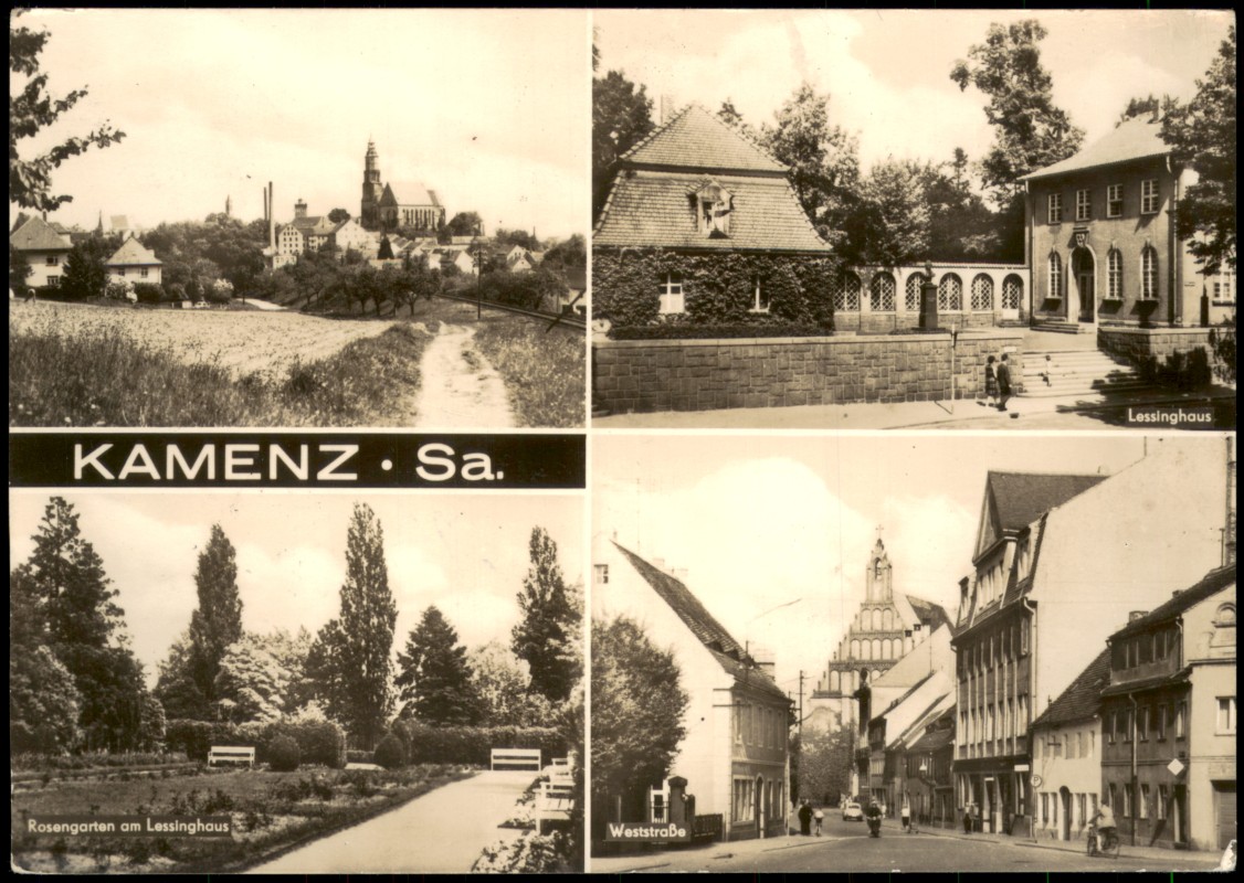 Photo Card: DDR Mehrbild-AK mit Weststraße Lessinghaus Rosengarten am Lessing - Kamenz