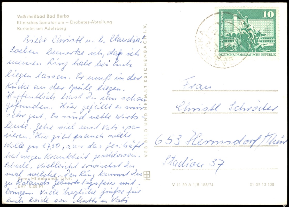 Photo Card: Klinisches Sanatorium Diabetes-Abteilung Kurheim am Adelsberg - Bad Berka