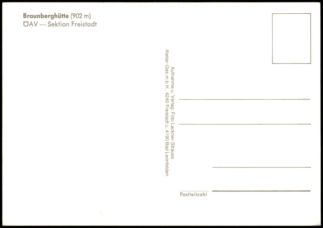 Photo Card: Braunberghütte (902 m) OAV Sektion Freistadt - .Österreich