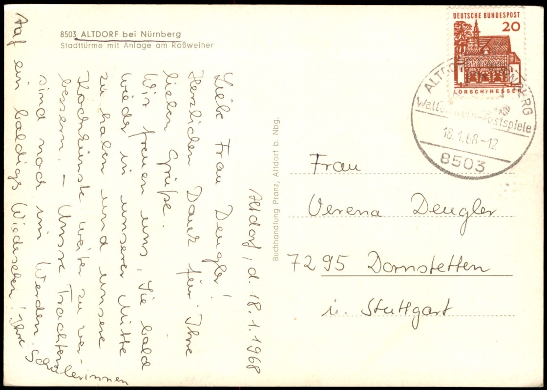 Photo Card: Stadttürme mit Anlage am Roßweiher - Altdorf bei Nürnberg
