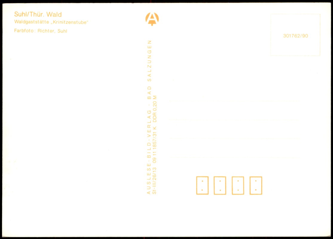Photo Card: Gasthaus Waldgaststätte Krinitzenstube im Thüringer Wald - Suhl