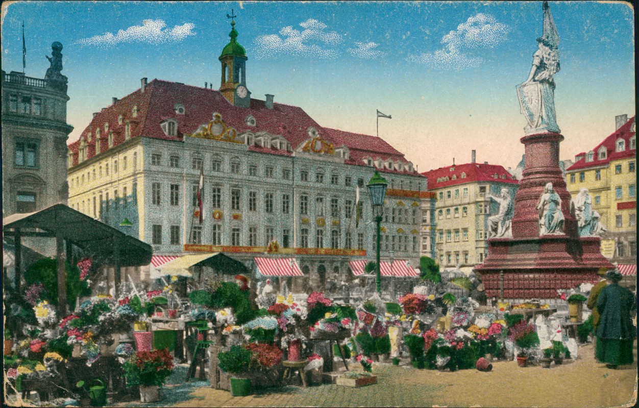 - Altmarkt mit Siegesdenkmalund Blumenmarkt.