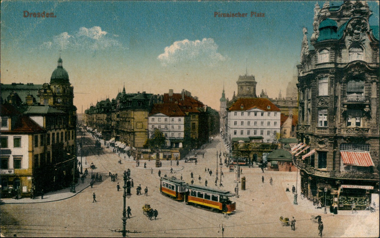vintage Postcard from 19151920: Pirnaischer Platz - Straßenblick:: Innere Altstadt-Dresden Address side