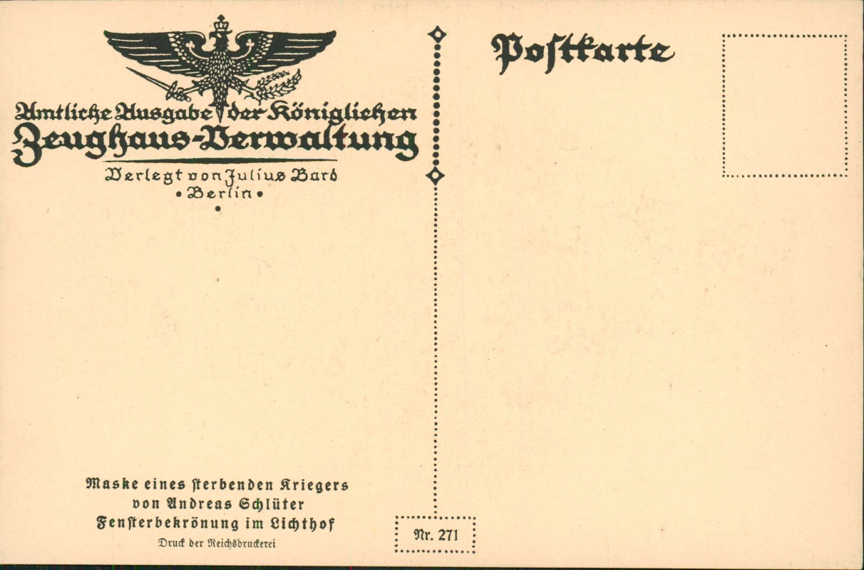 Postcart: Zeughaus Maske eines sterbenden Kriegers Lichthof 2 - Berlin