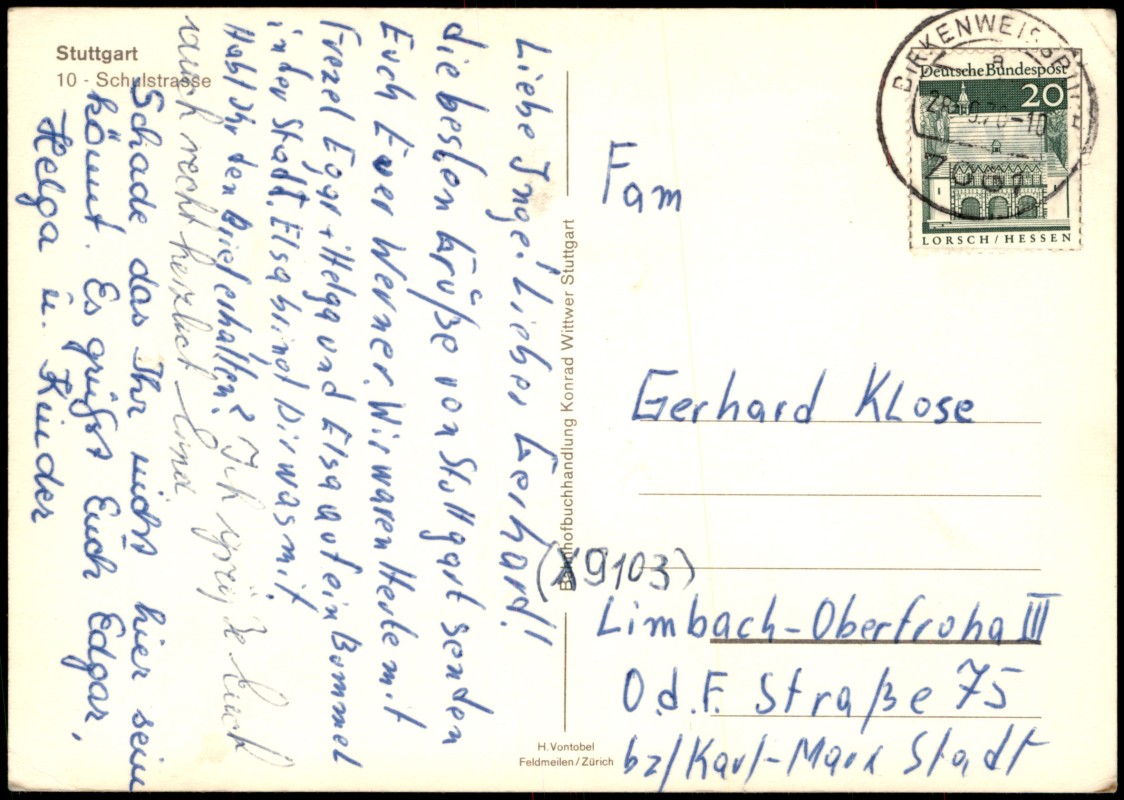 Postcart: Schulstraße Geschäfte belebt - Stuttgart