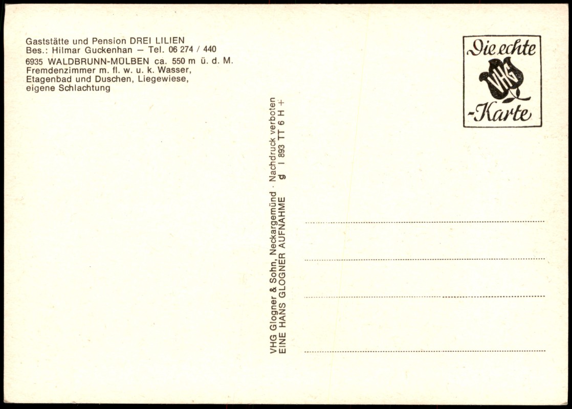 Photo Card: Gaststätte und Pension DREI LILIEN im Ortsteil Mülben - Mülben-Waldbrunn (Odenwald)
