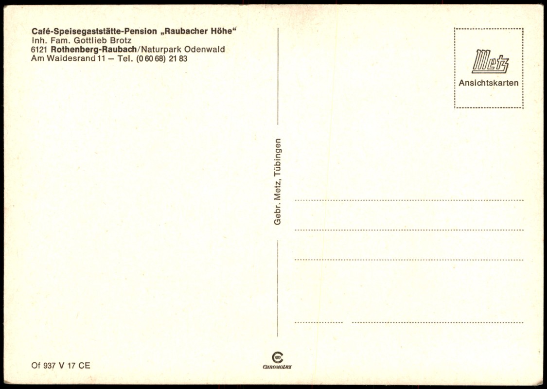Photo Card: Café-Speisegaststätte-Pension Raubacher Höhe im Odenwald - Odenwald Allgemeine Ansichten