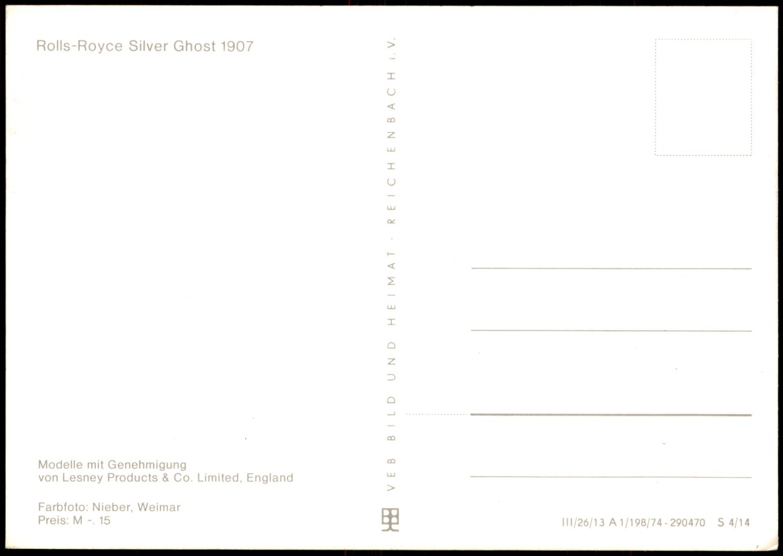 Photo Card: KFZ Autos Oldtimer Rolls-Royce Silver Ghost anno 1907 DDR-Karte