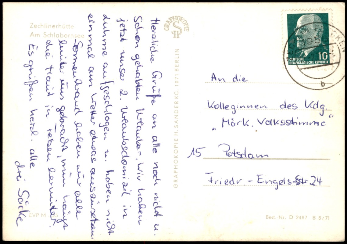 Postcart: Zechlinerhütte, Am Schlabornsee mit Segelboot - Zechlinerhütte/Mark-Rheinsberg