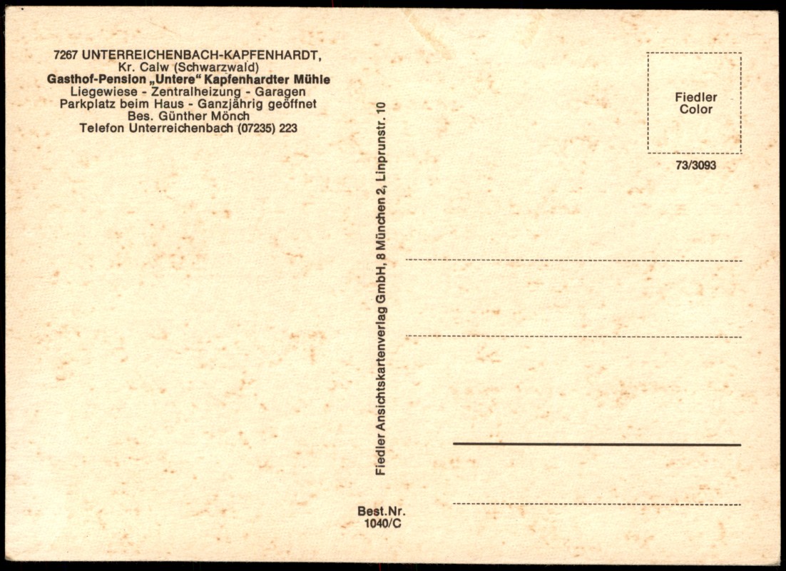 Postcart: Untere Kapfenhardter Mühle mit Gedicht - Unterreichenbach
