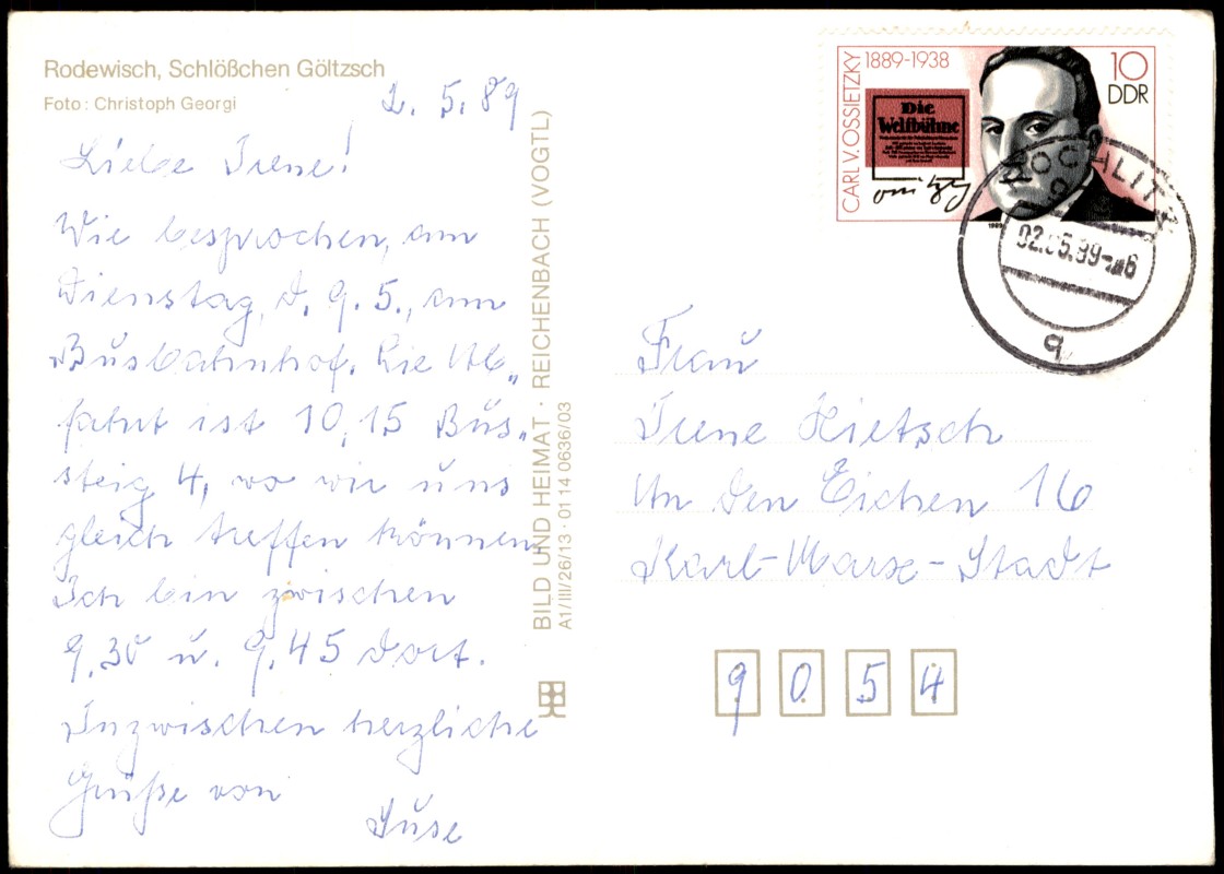 Photo Card: Schlößchen Göltzsch zur DDR-Zeit - Rodewisch (Vogtland)