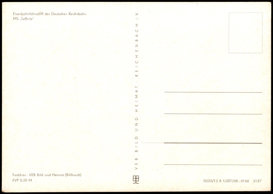 Photo Card: DDR Schiffsfoto-AK Eisenbahnfährschiff der Deutschen Reichsbahn MS Saßnitz