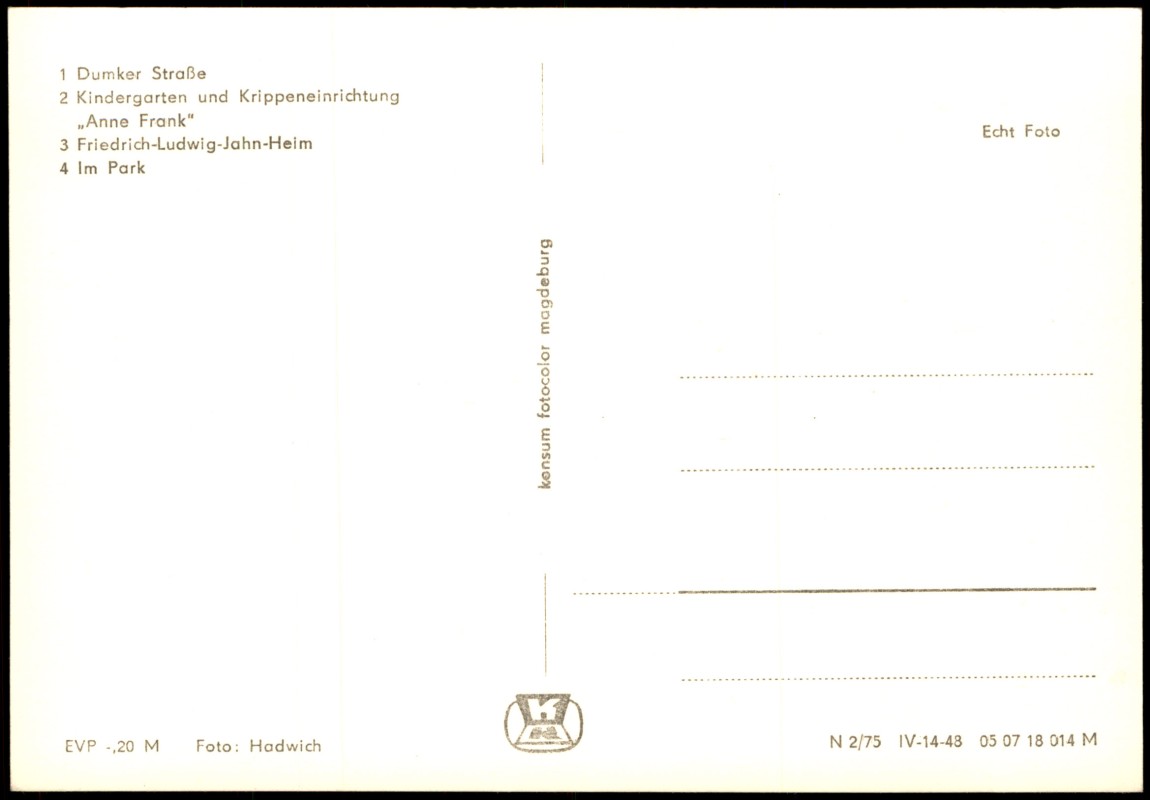 - DDR Mehrbild-AK u.a. Dumker Str., Kindergarten Krippe Anne Frank uvm.