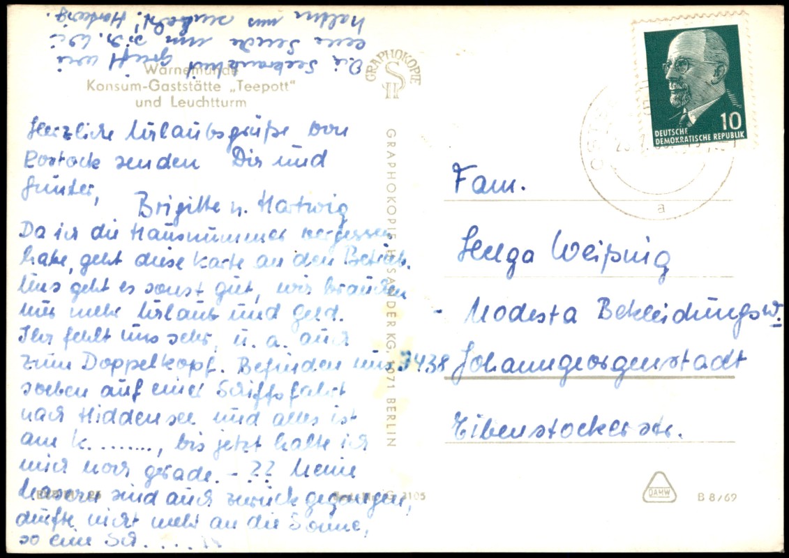 Photo Card: Konsum Gaststätte Teepott und Leuchtturm zur DDR-Zeit - Warnemünde-Rostock