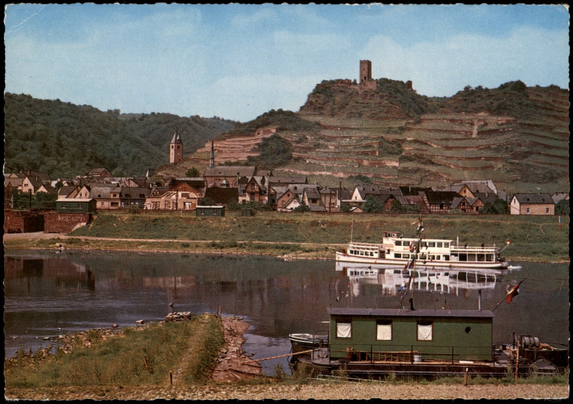 Postcart: mit Niederburg und Fahrgastschiff - Kobern-Gondorf