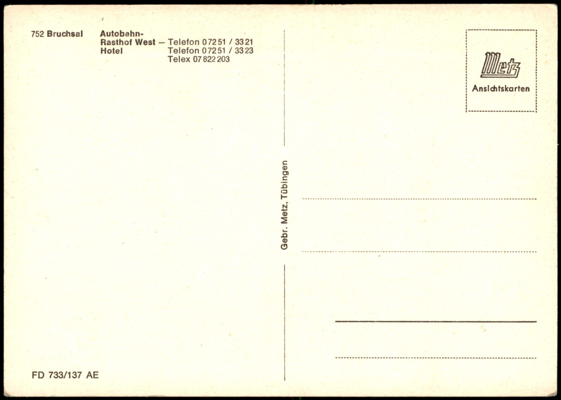 Postcart: Autobahn-Raststätte, Eingang - Bruchsal