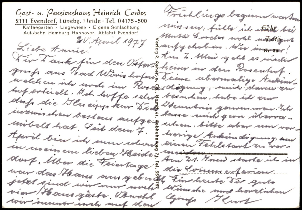 Postcart: Cordes Gast. u. Pensionshaus 4 Bild - Evendorf-Egestorf