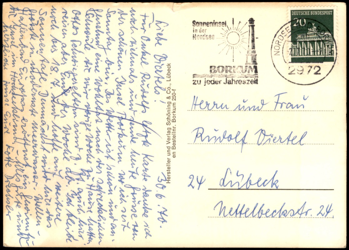 you can buy this card here:- Borkum Mehrbildkarte Grüße vom Nordseeheilbad Ortsansichten u.a. Leuchtturm 1970