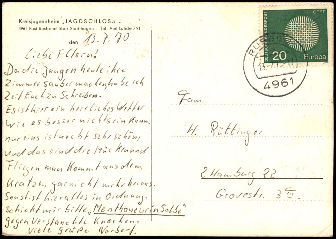 Photo Card: Ortsansicht Kreisjugendheim JAGDSCHLOSS Rusbend über Stadthagen - Rusbend-Bückeburg