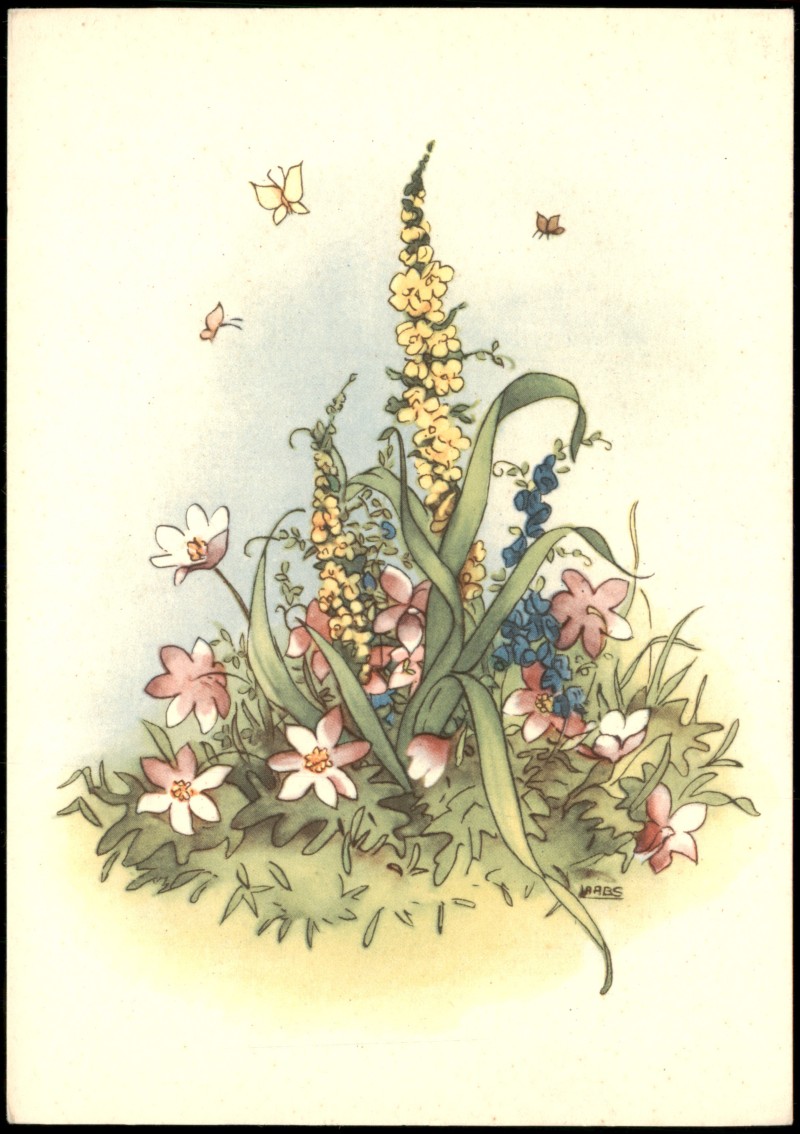 Postcart: Künstlerkarte mit Blumen Zu Gunsten derZivil-Blinden