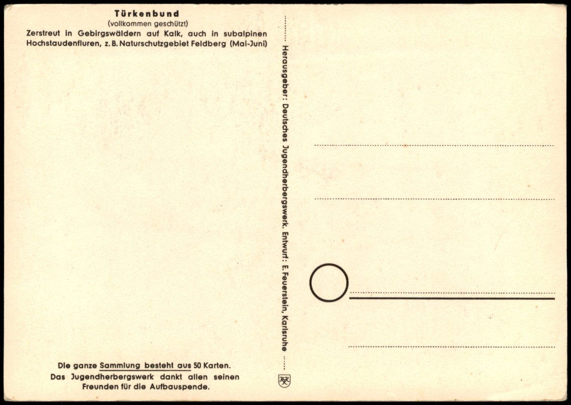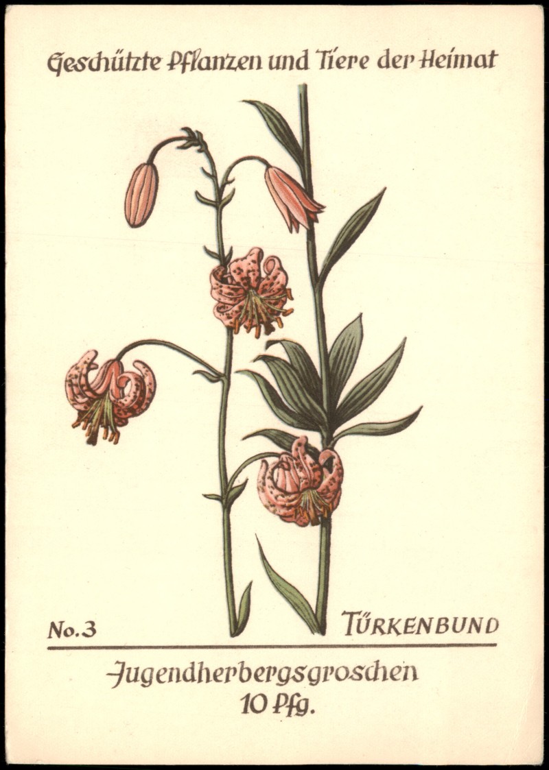- Geschützte Pflanze TÜRKENBUND Serien-AK mit Jugendherbergsgroschen 10 Pfg.