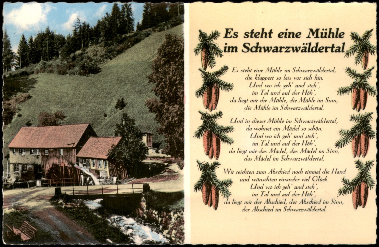 Postcart: Mühle im Schwarzwäldertal mit Liedtext
