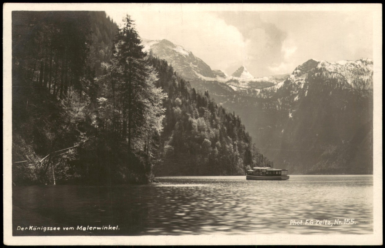 - Der Königssee vom Malerwinkel, Boot Schiff Berge