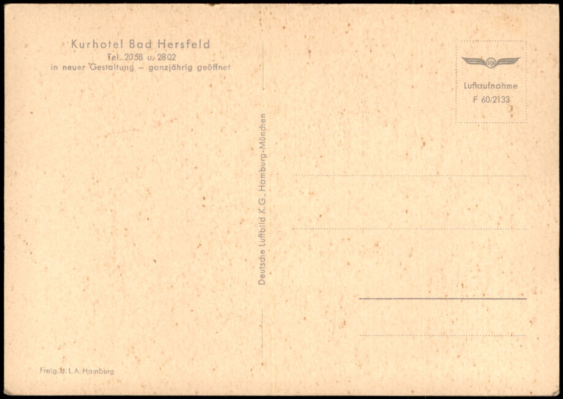 Photo Card: Luftbild Kurhotel Kurhaus v. Flugzeug aus Luftaufnahme - Bad Hersfeld