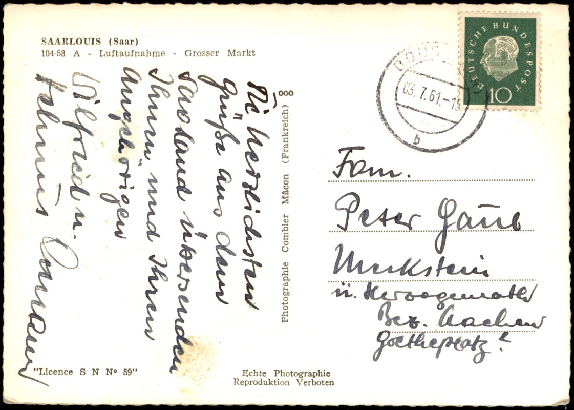 Postcart: Luftaufnahme Grosser Markt Luftbild - Saarlouis