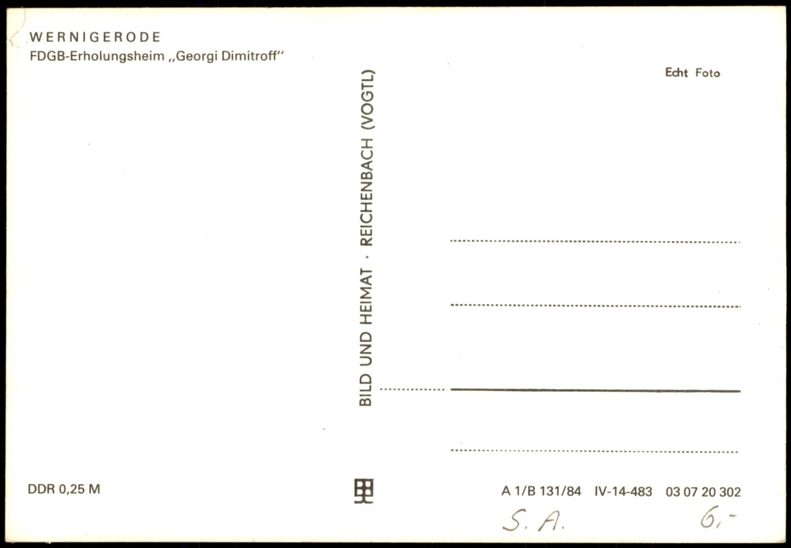 Photo Card: FDGB-Erholungsheim Georgi Dimitroff zur DDR-Zeit - Wernigerode