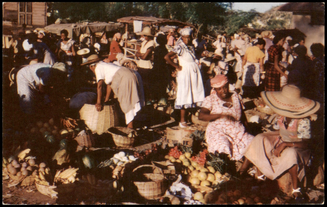 - Jamaica B.W.I. Market Scene Markt Jamaika Karibik