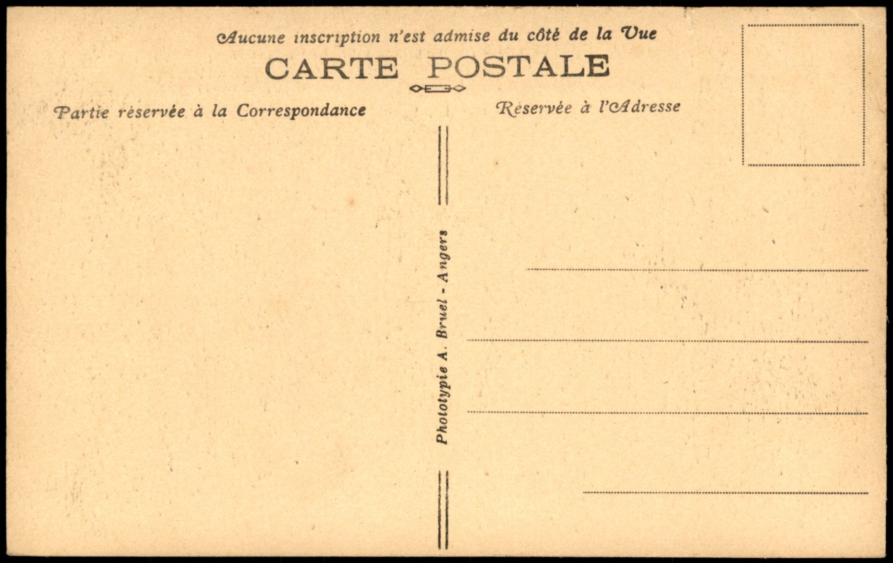 - Historische Ansicht des Palais und des Hôtel de Ville in Tours, Frankreich. Die Karte zeigt die imposanten Gebäude und einen belebten Platz mit Passanten und frühen Automobilen. Herausgegeben von Phototypie A. Bruel, Angers, als Teil einer Serie mit der Nummer 14. Die Rückseite ist eine geteilte Postkarte mit dem Hinweis, dass keine Inschriften auf der Bildseite zugelassen sind.