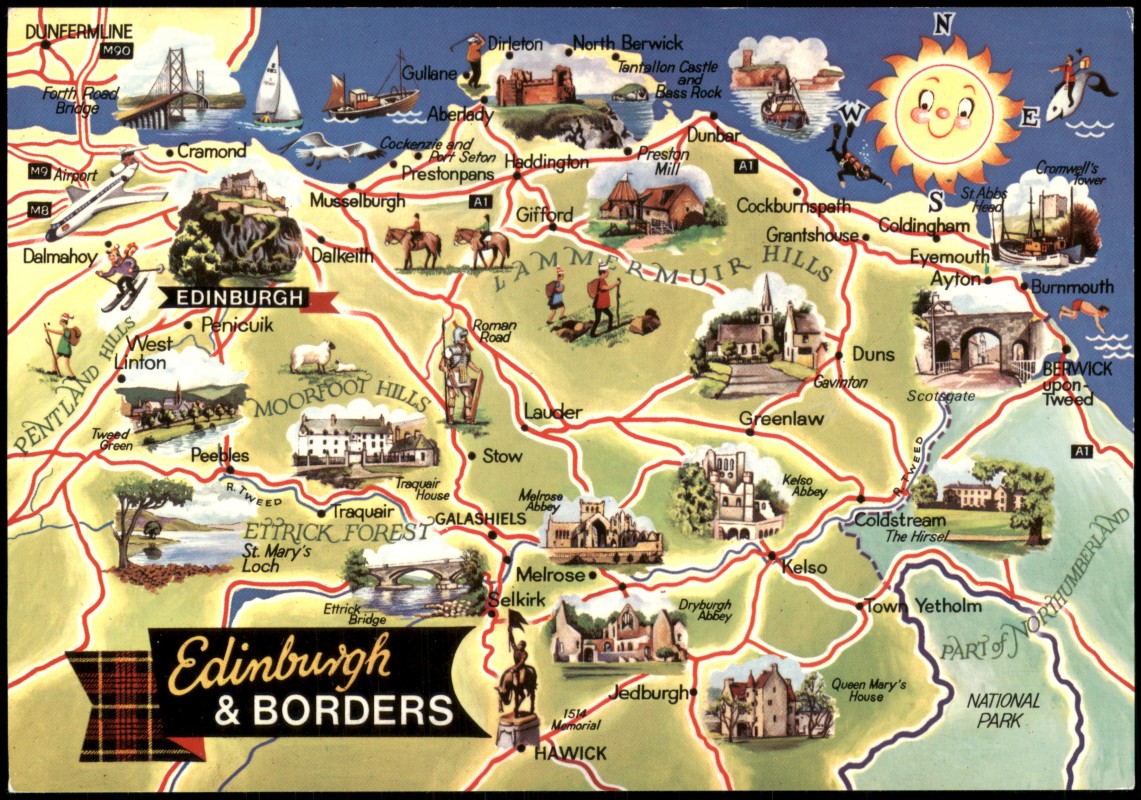 - Illustrierte Landkarte Edinburgh & Borders