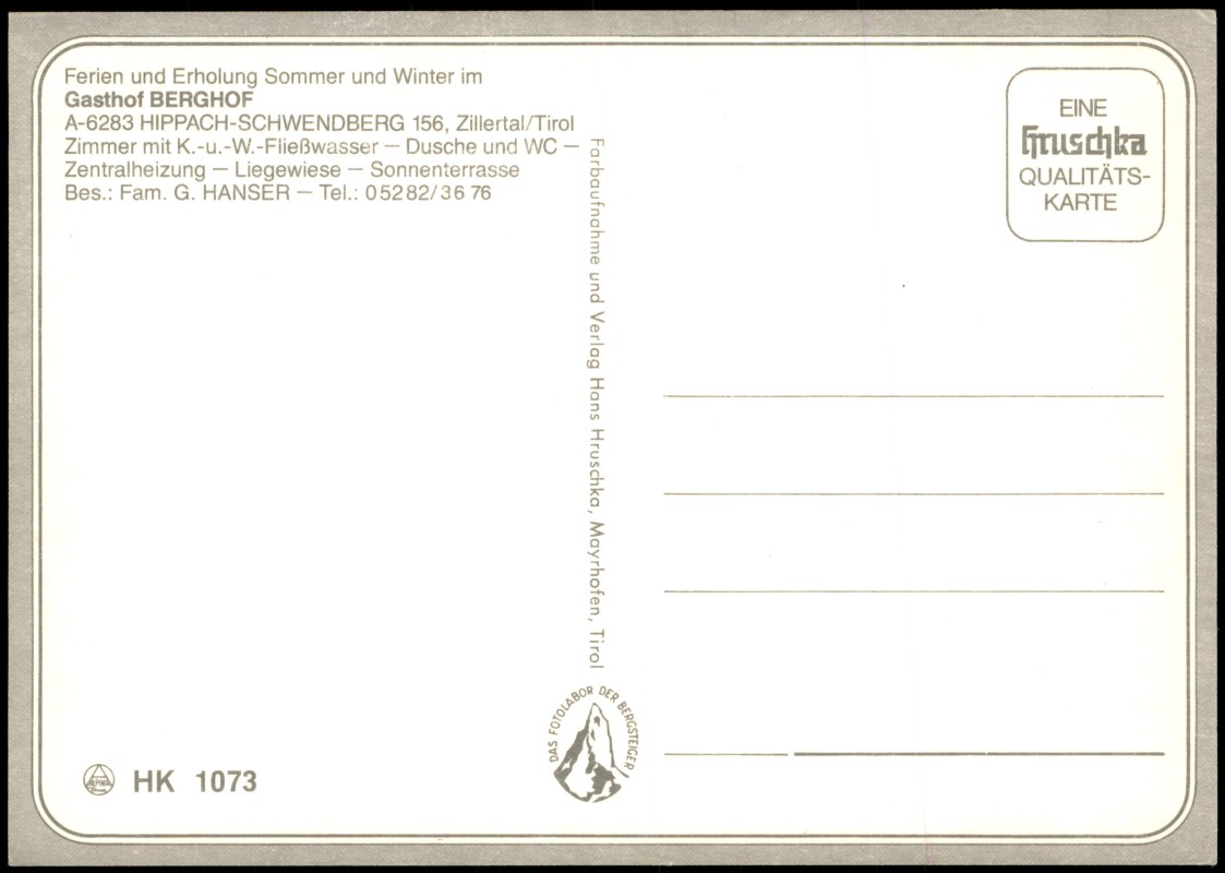 Photo Card: Gasthof Berghof im Zillertal Tirol - Hippach