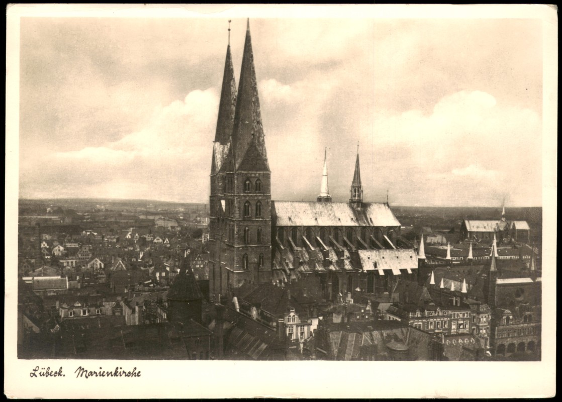 Photo Card: Stadt-Panorama mit Marienkirche - Lübeck