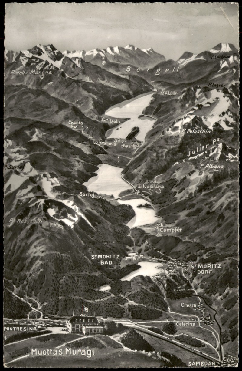 Photo Card: Schweiz Relief-Karte Alpen Region um St. Moritz, Muottas Muragl - .Schweiz