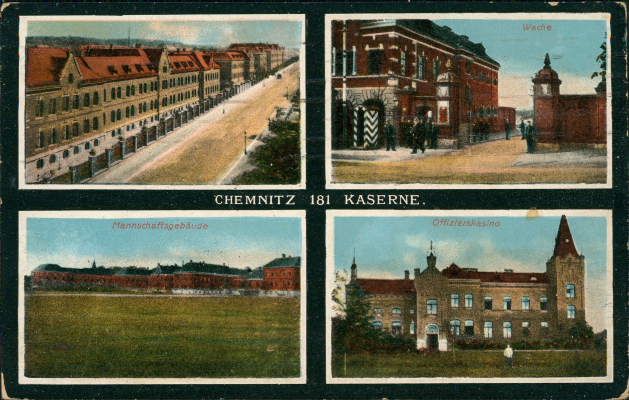 Postcart: 4 Bild Kaserne der 181er - Chemnitz