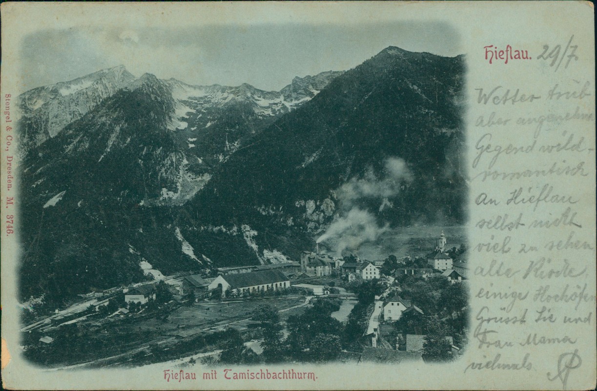 you can buy this card here:- Ansichtskarte Hieflau-Landl (Bezirk Liezen) Stadtpartie Mondscheinlitho 1898