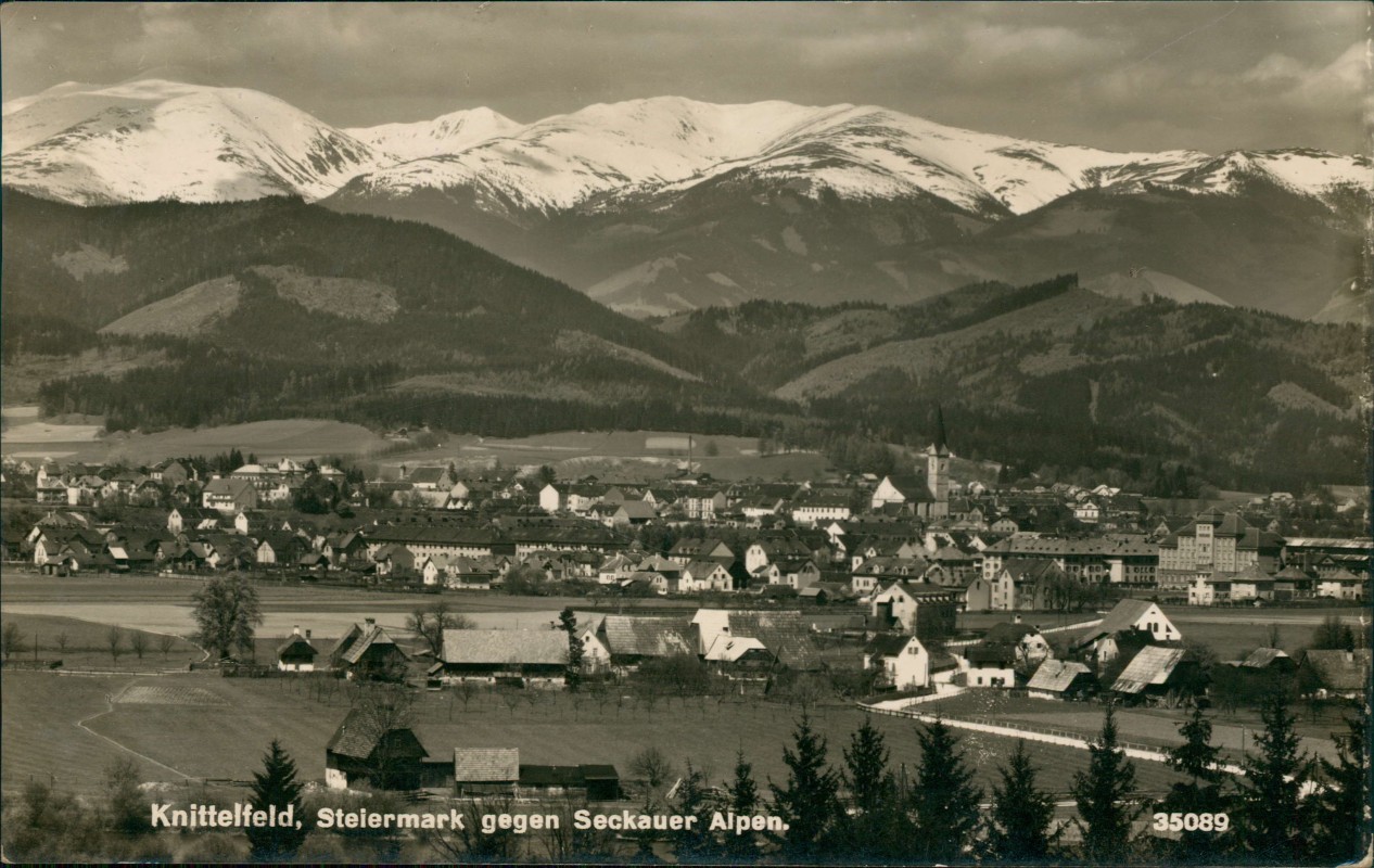 Postcart: Stadt mit Alpen - Fotokarte - Knittelfeld